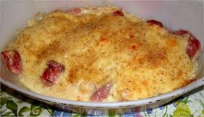 Foa the ‘bechamel sawse’: scald the milk by bringin’ it to the boil in a sawsepan. Add the onion, bay leaf an’ peppacawns an’ simma on a low ‘eat foa five to ten minits so that all the flavvas become infused into the milk. Meanwhile to make the roux: select a fairly heavy sawsepan an’ melt the butta, whisk in the flowa an’ cook on a genkul ‘eat foa too to free minits, but don’t let it turn braan becawse that’s when it becomes burnt an’ you ‘ave to frow it away an’ start again: norvern birds do it awl the time becawse they is fick an’ unsophisticated. Strain the ‘ot milk an’ add slowly whiskin’ awl the time, avoidin’ any lumps, until it ‘as been absorbed by the roux. Simma foa free minits addin’ sawlt, peppa an’ nutmeg foa taste. This is a basic sawse that can be the catalyst foa many other ones, such as, by addin’ cheese it becomes ideal foa cawliflowa, it can be the beginnin’ of a carbonara, marinara, lasagne oa cannelloni, oa just used in fish oa chickin pie. The adaptations are endless so it worf perseverin’ wiv it an’ getting’ it right.